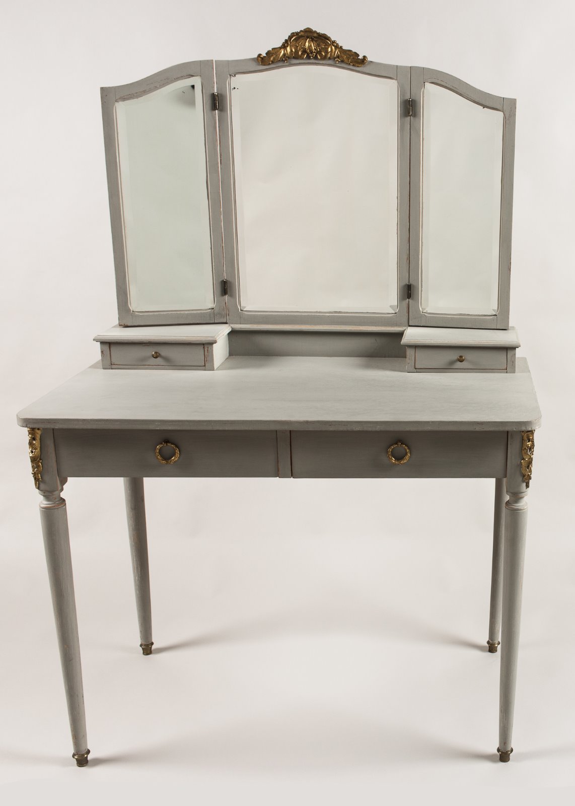 French Painted Dressing Table with Triple Adjustable Dressing Mirror.