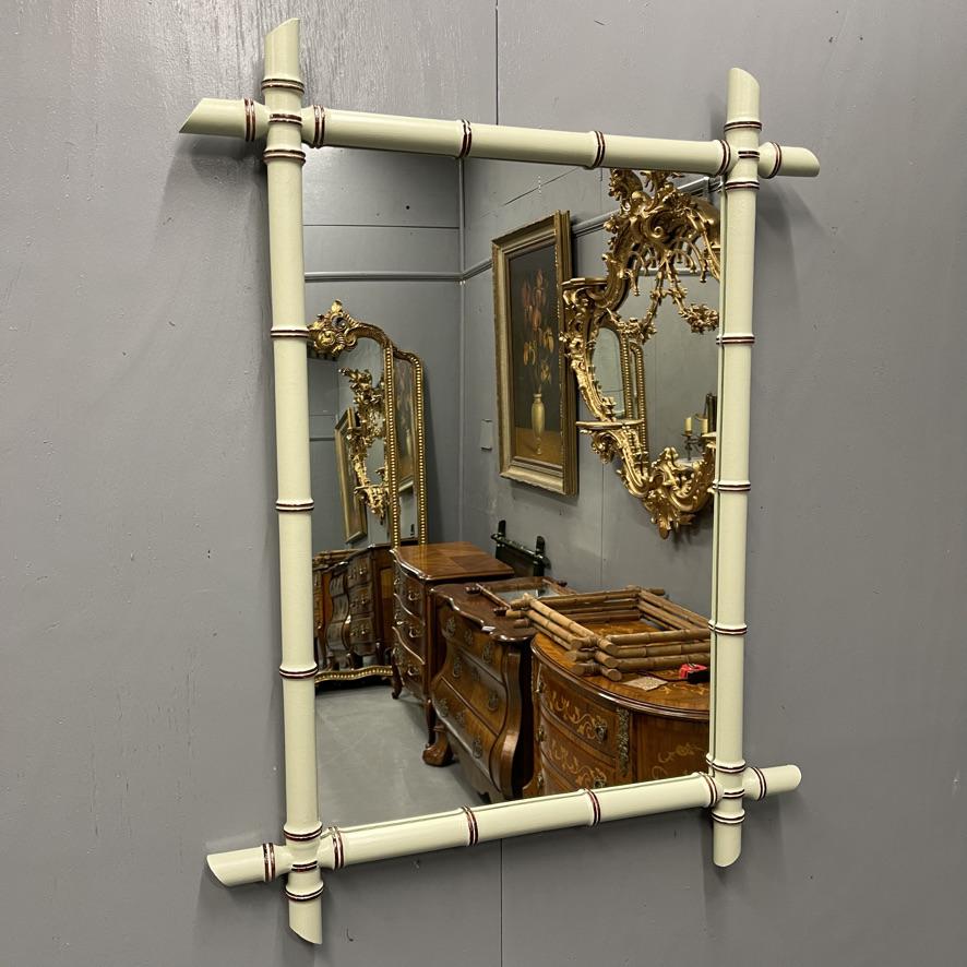 French Painted Faux Bamboo Mirror in Vert de Terre
