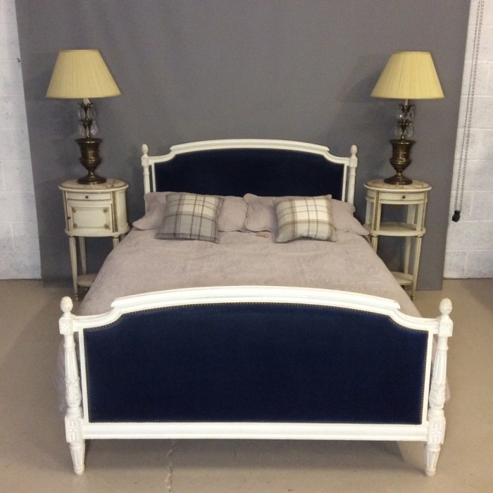 French Painted & Upholstered Double Bed c.1920 (1 of 1)
