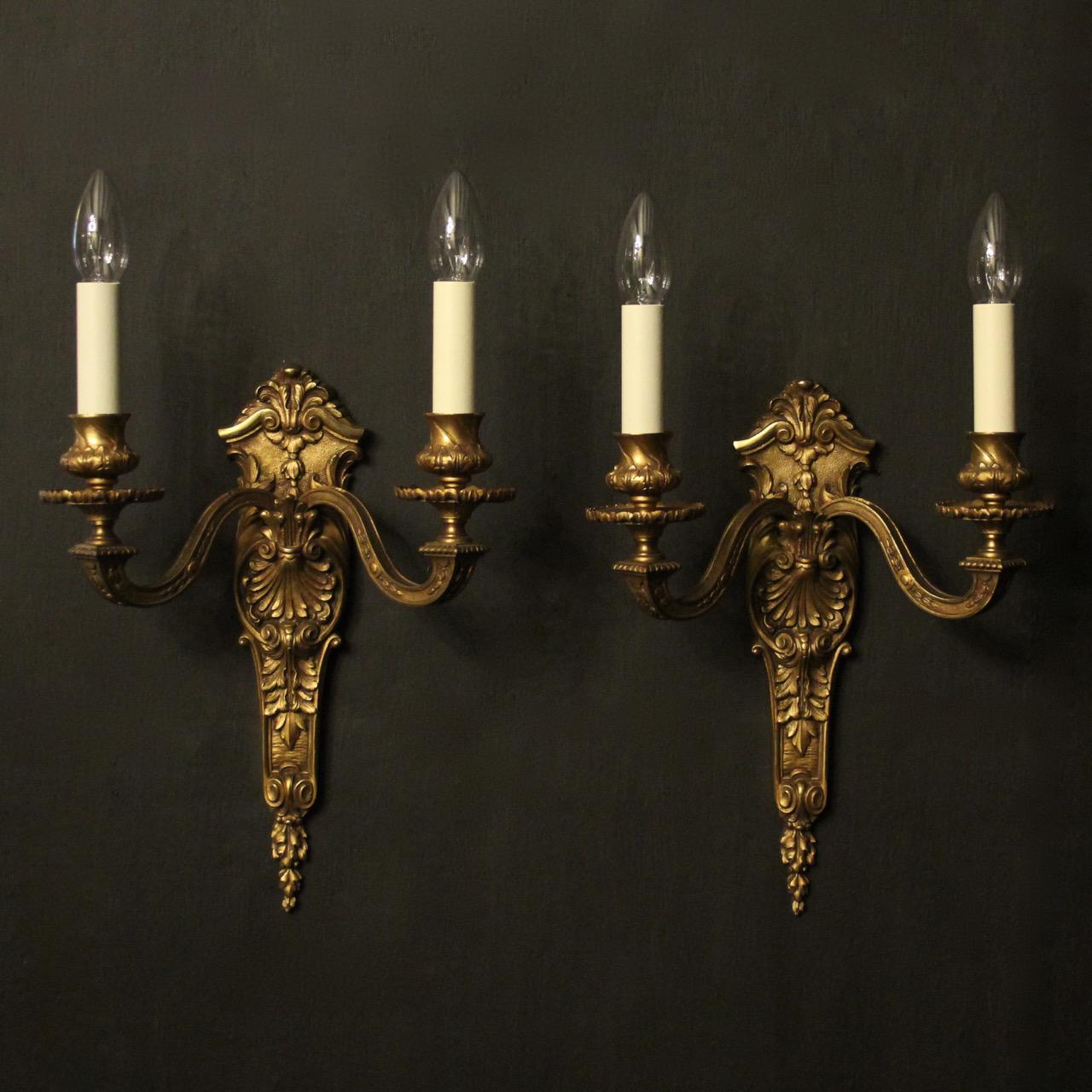 French Pair of 19th Century Gilded Bronze Antique Wall Sconces