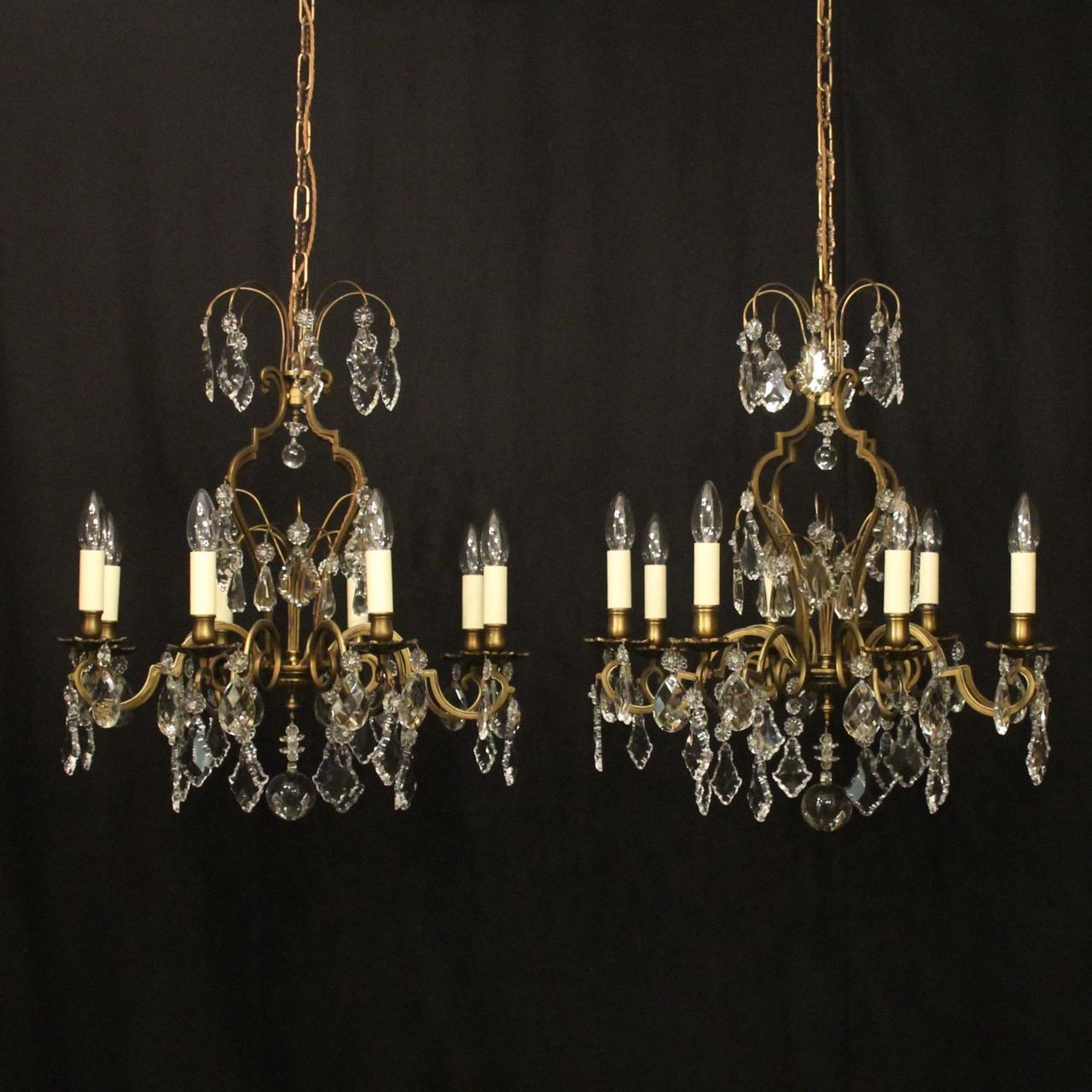 French Pair Of 8 Light Antique Chandeliers
