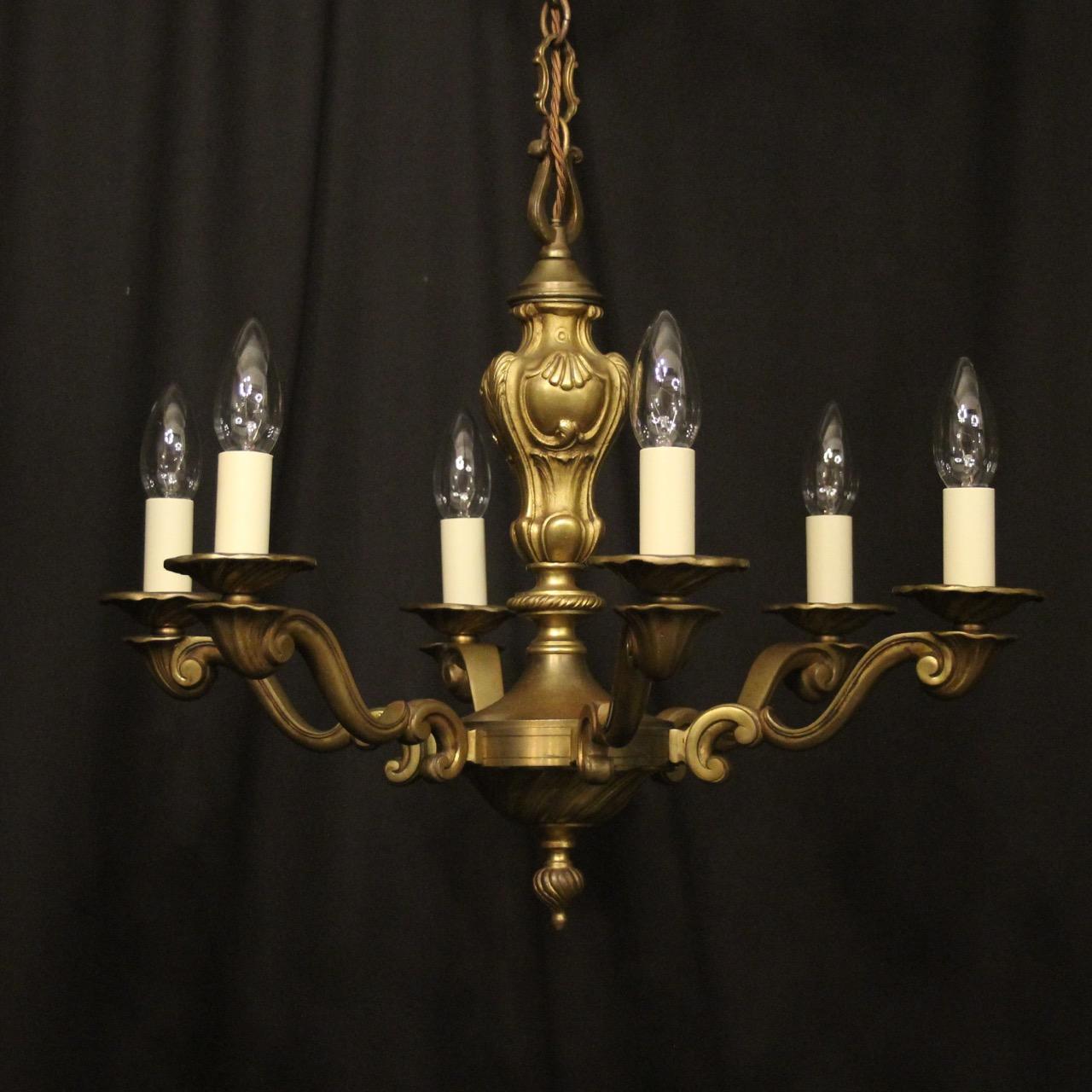 French Pair of Bronze 6 Light Antique Chandeliers