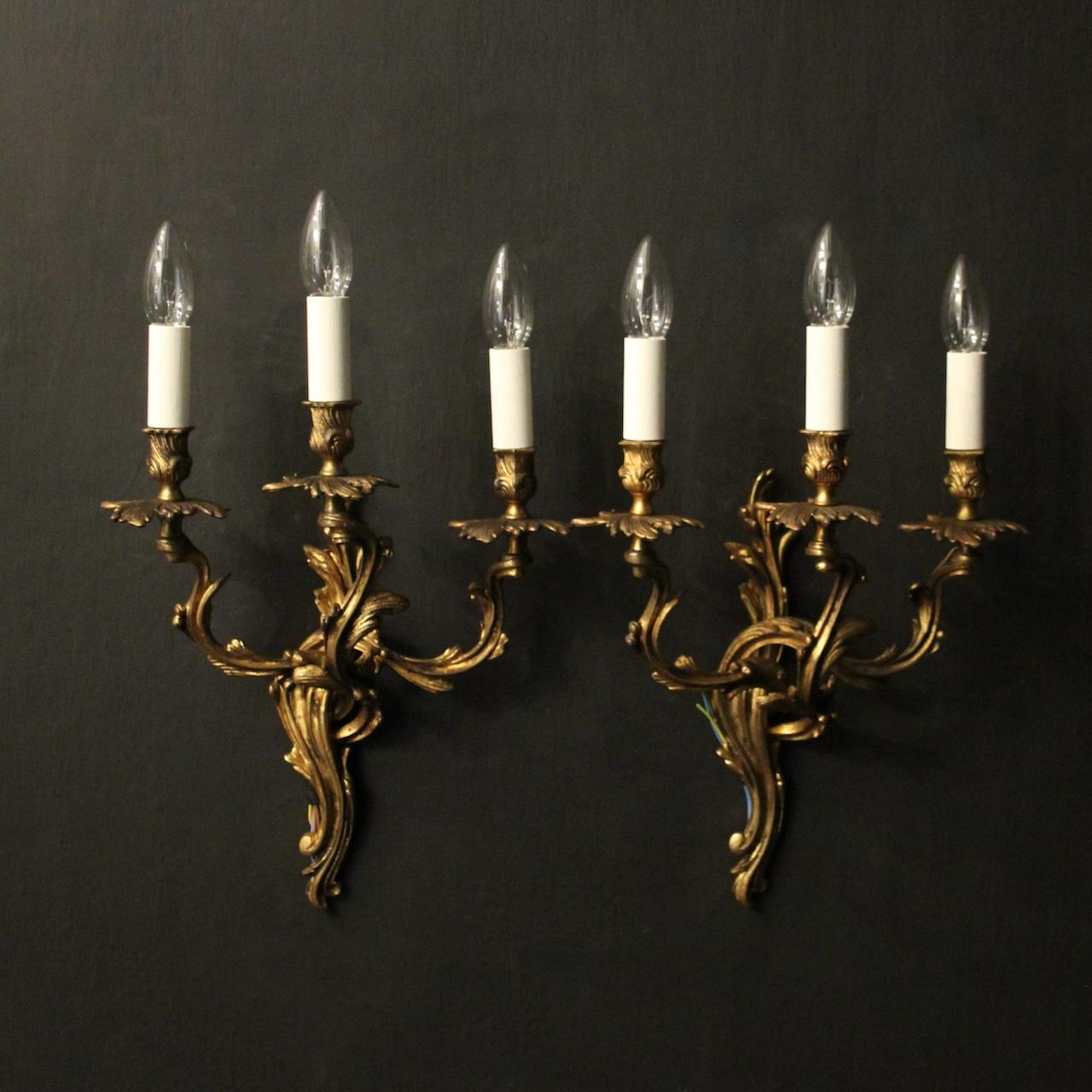 French Pair of Bronze Antique Wall Lights