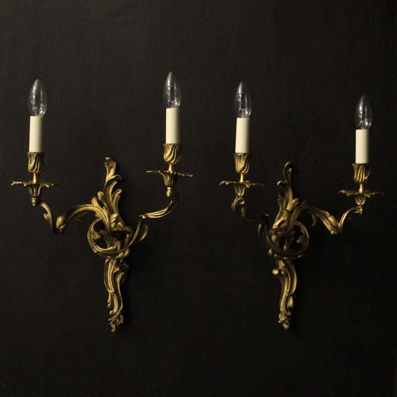 French Pair of Bronze Antique Wall Sconces