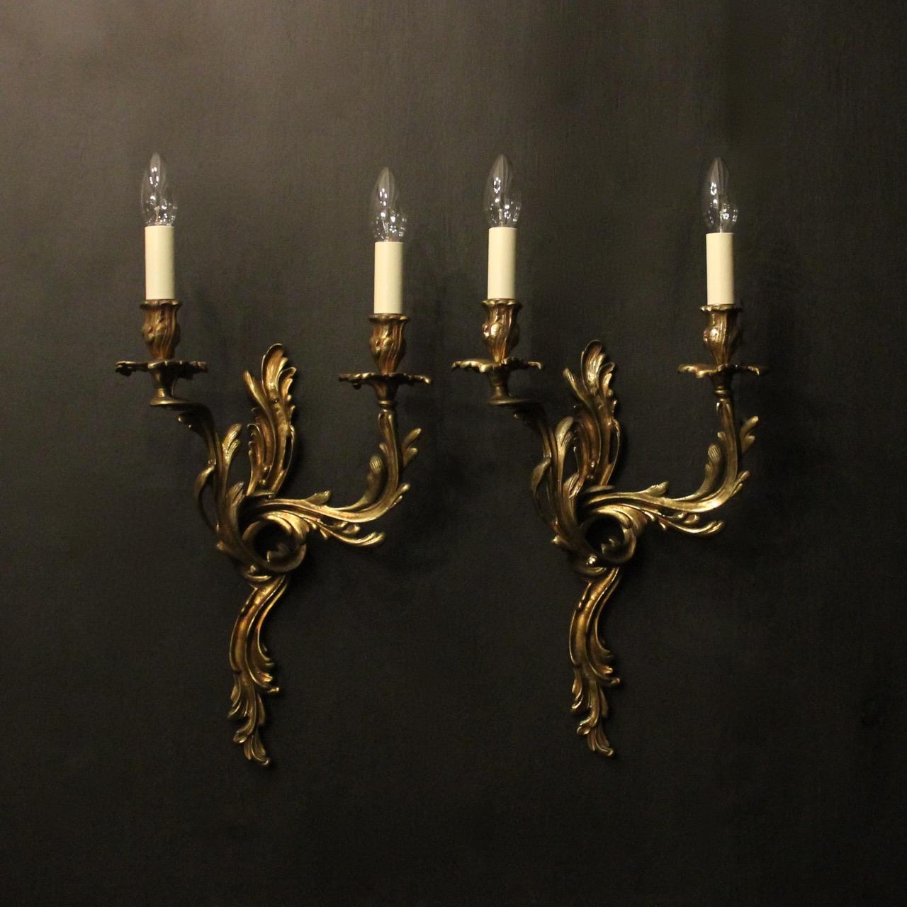 French Pair of Bronze Antique Wall Sconces