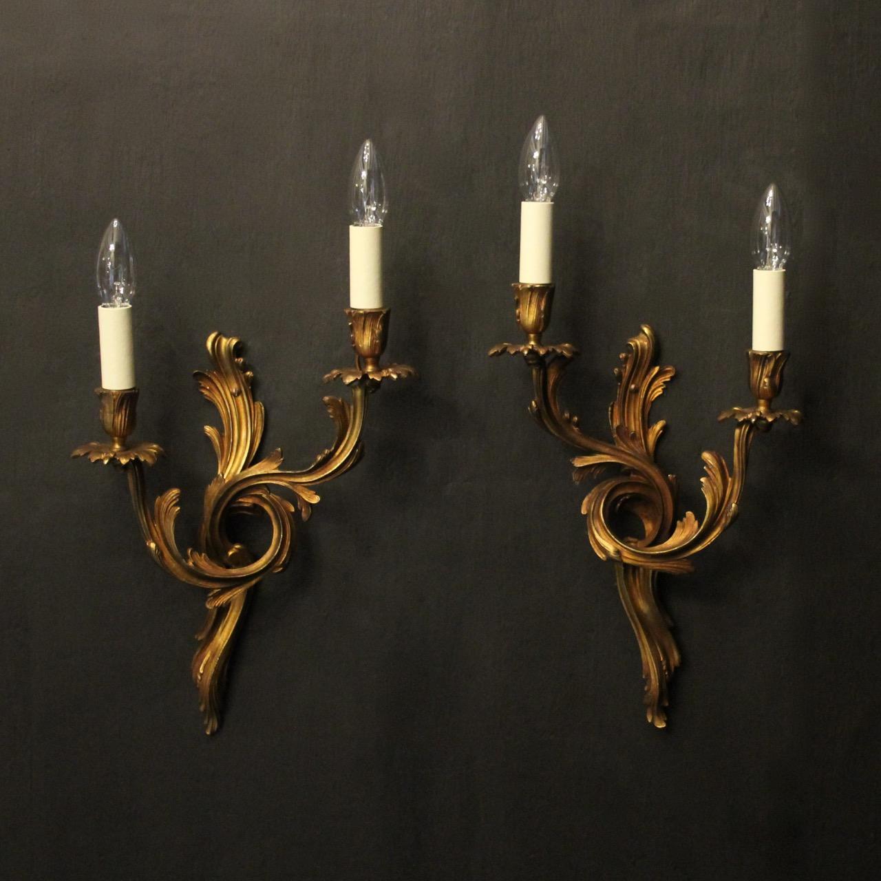 French Pair of Bronze Antique Wall Sconces