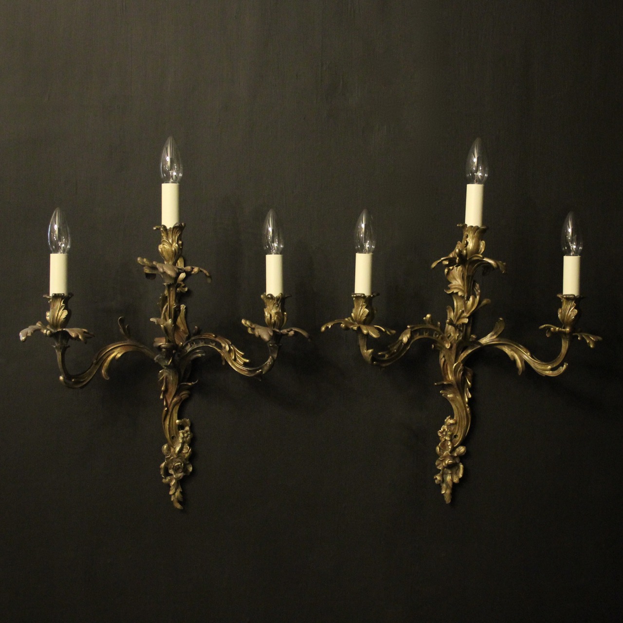 French Pair of Bronze Antique Wall Sconces c.1890