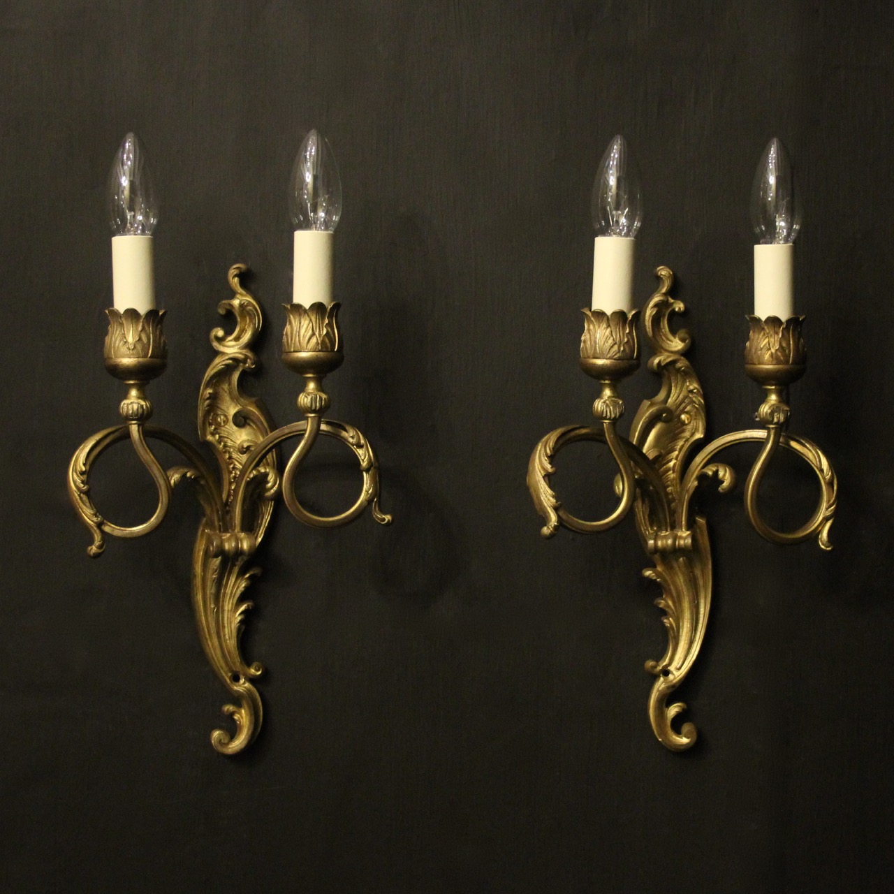 French Pair of Bronze Antique Wall Sconces c.1890