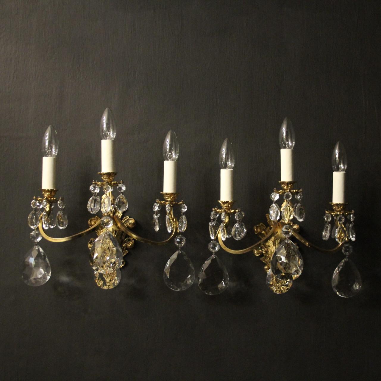 French Pair Of Bronze Triple Arm Wall Lights