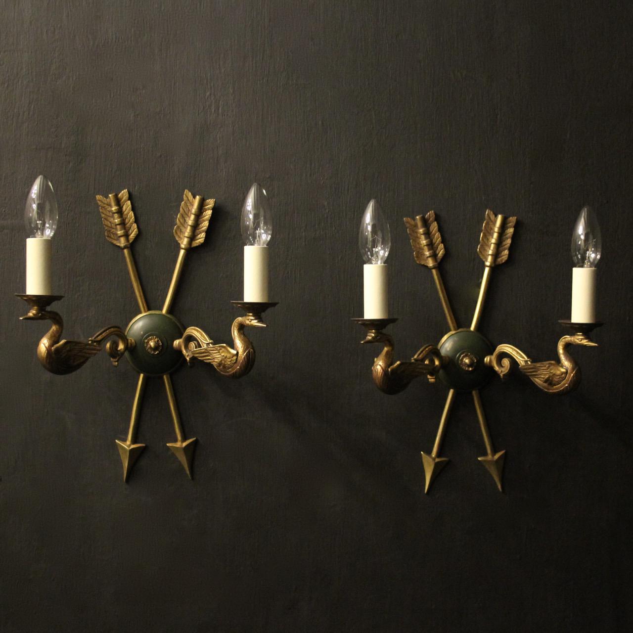 French Pair of Empire Gilded Wall Lights