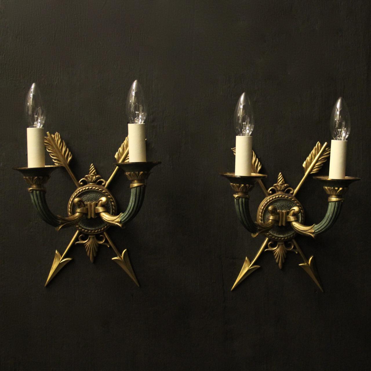 French Pair of Empire Gilded Wall Lights