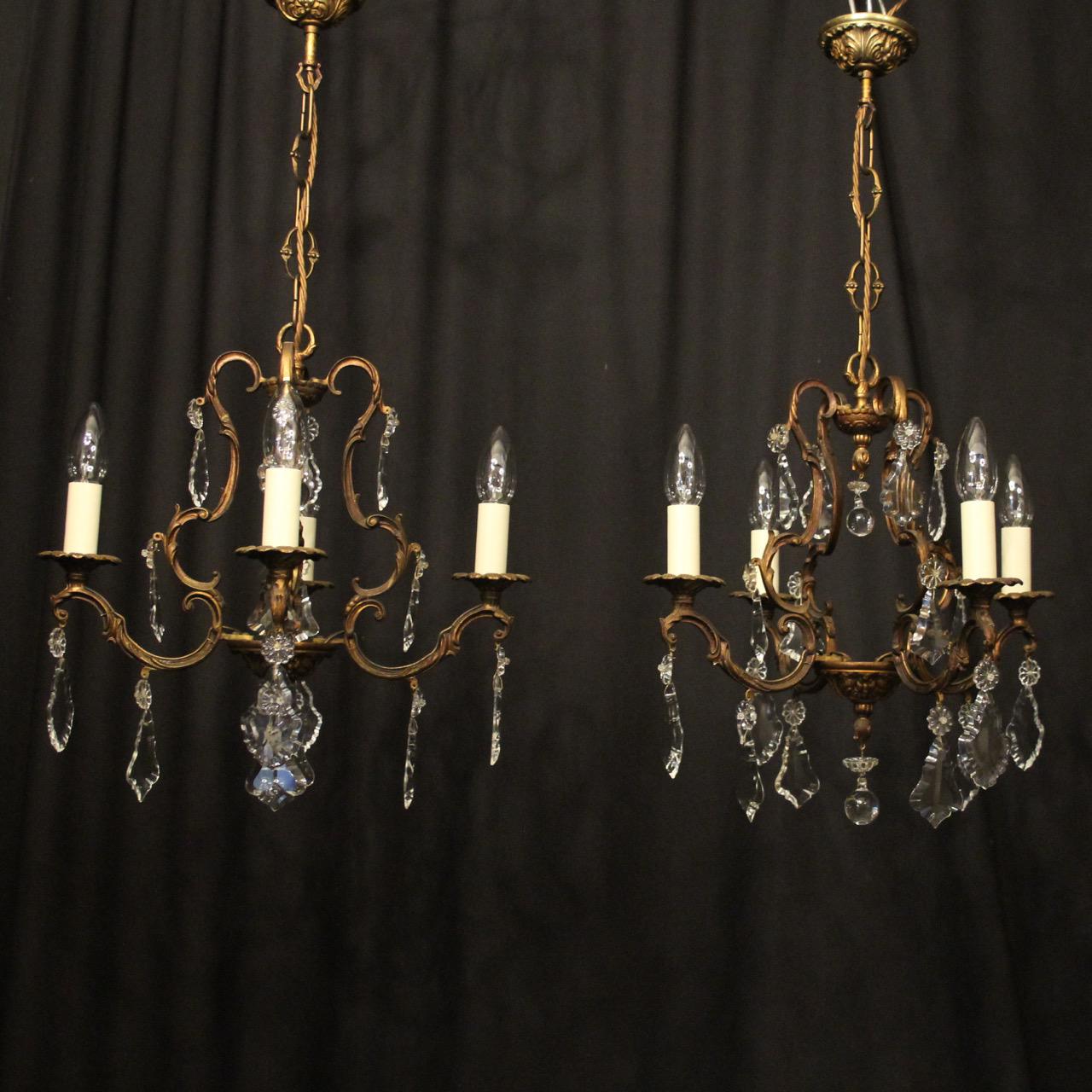 French Pair of Gilded 4 Light Chandeliers