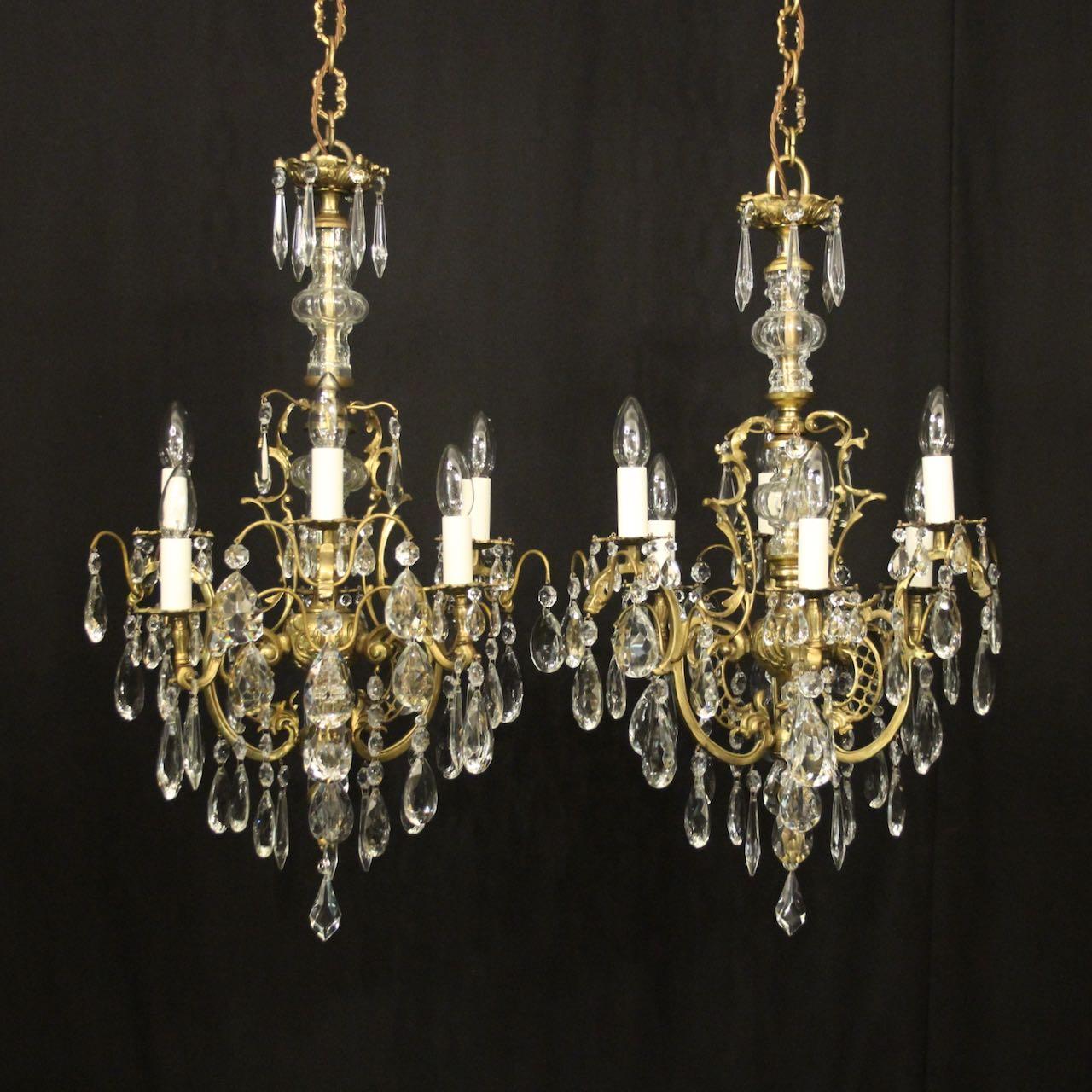 French Pair Of Gilded 6 Light Chandeliers