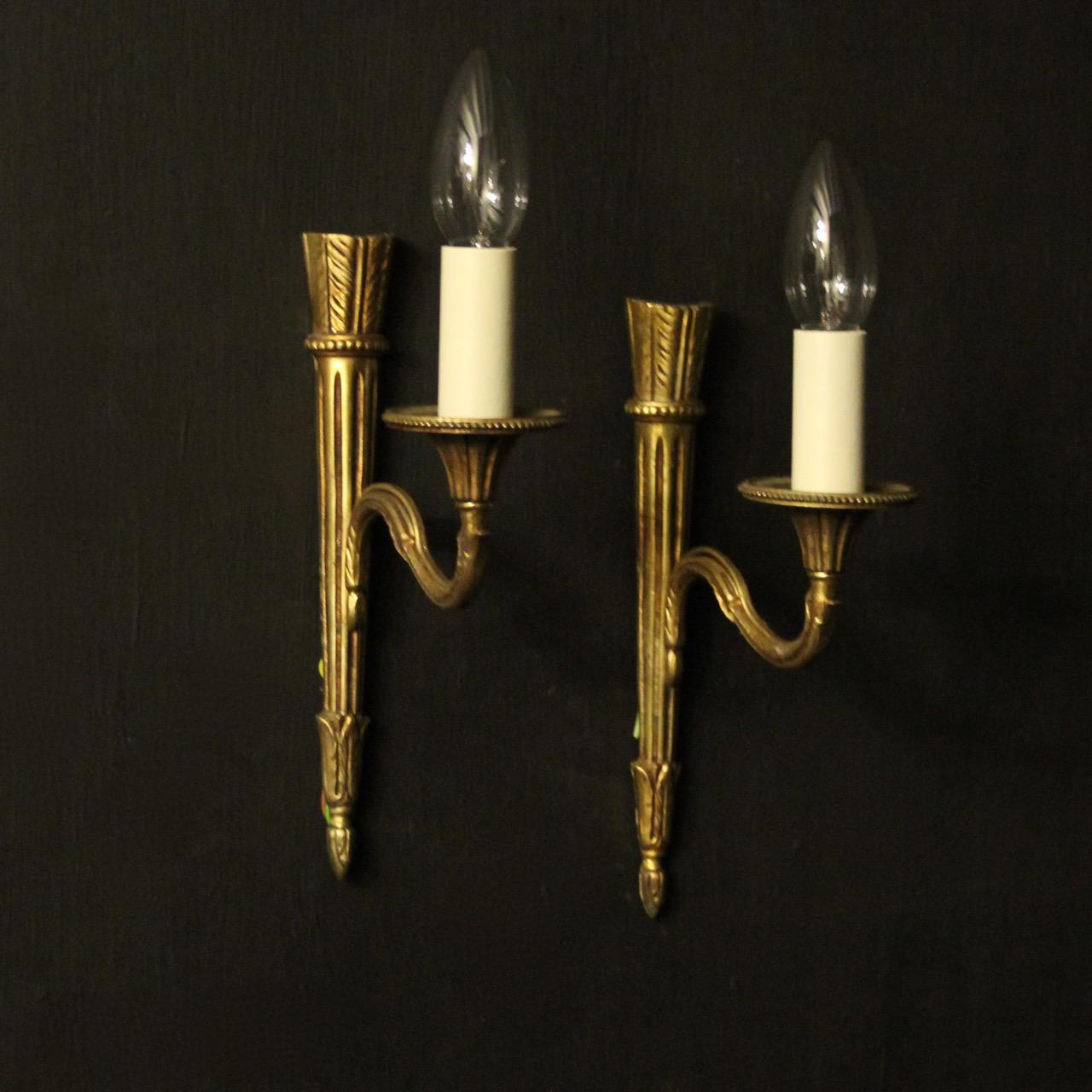 French Pair of Gilded Brass Antique Wall Lights
