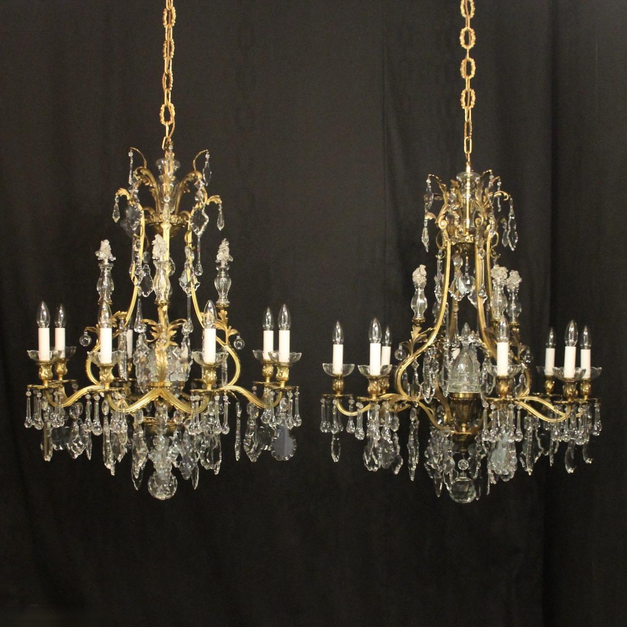 French Pair of Gilded Bronze Antique Chandeliers