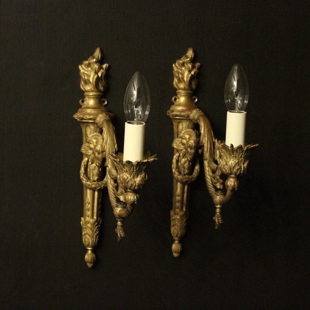 French Pair of Gilded Bronze Antique Gasolier Wall Lights