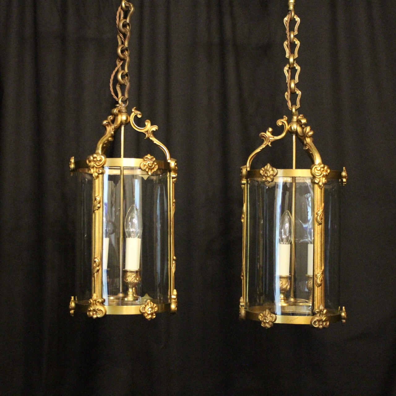 French Pair of Gilded Bronze Hall Lanterns c.1930