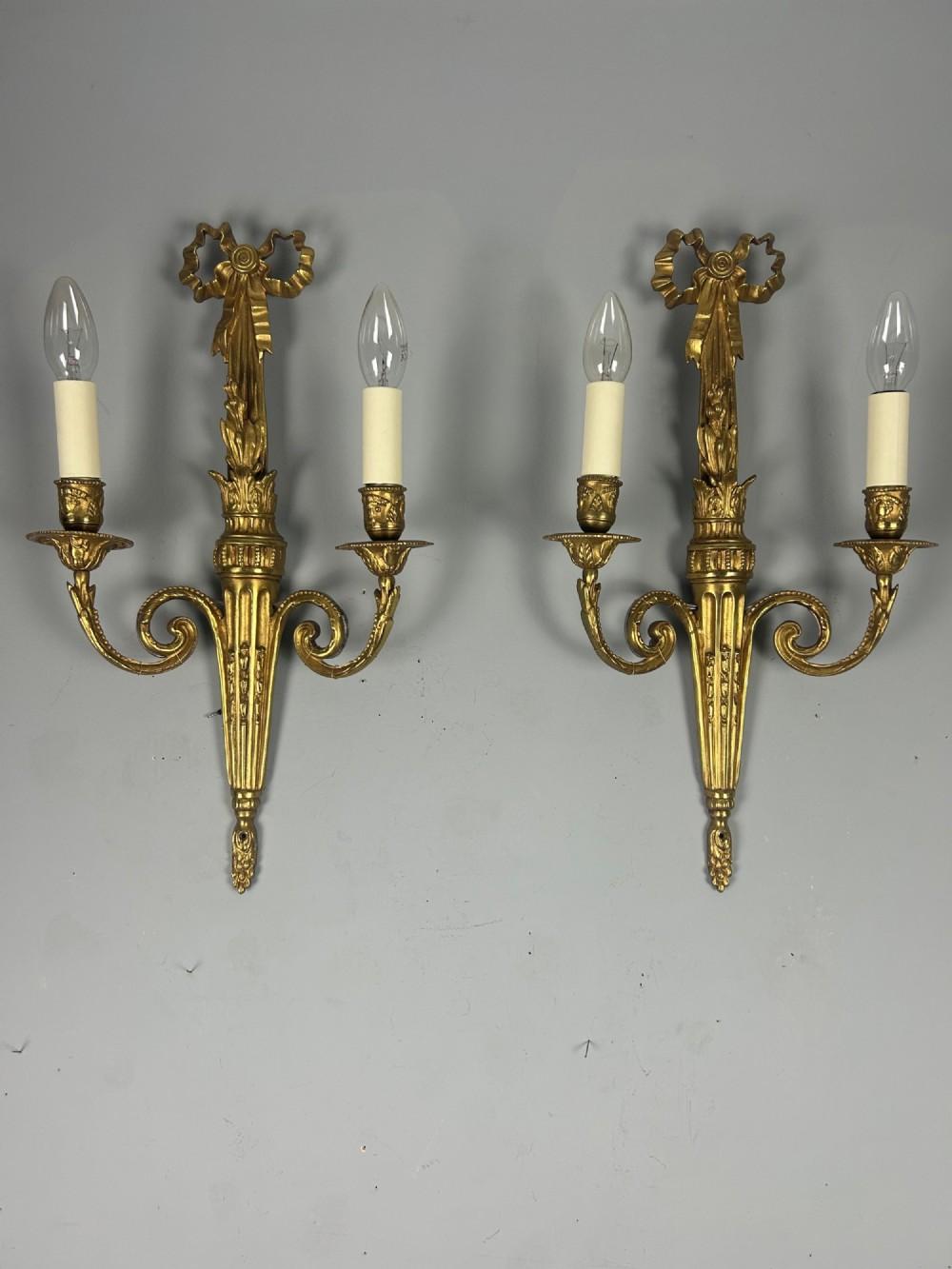 French Pair of Gilded Bronze Large Twin Arm Wall Lights