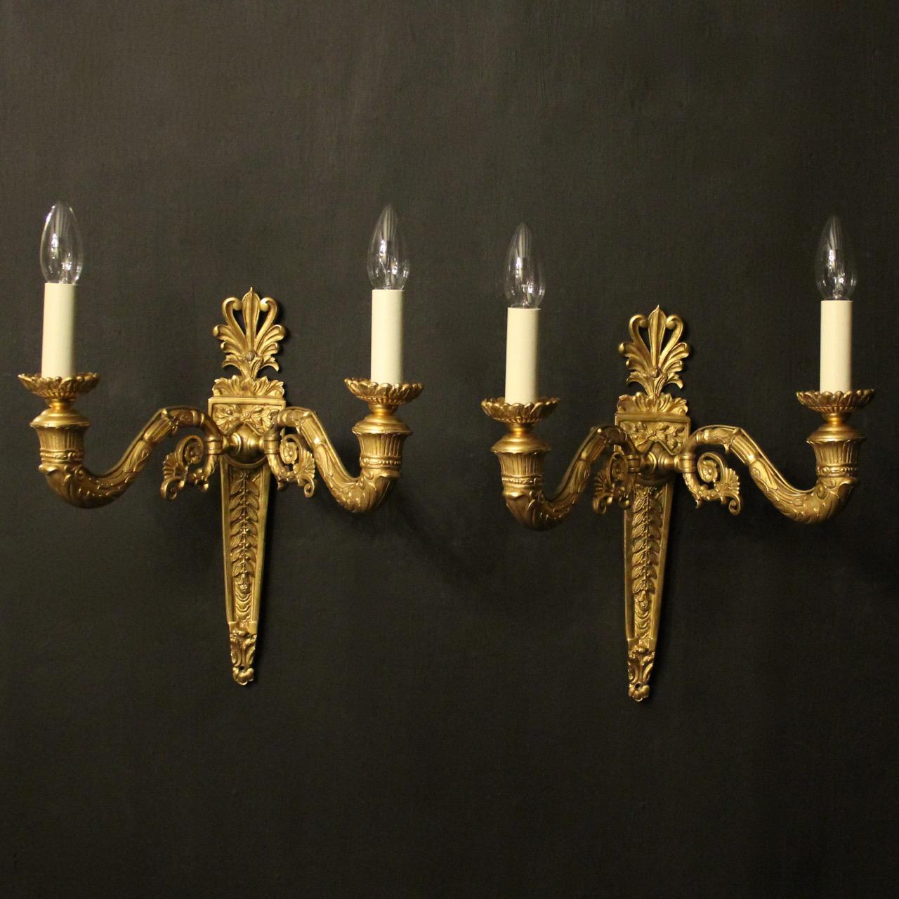 French Pair of Gilded Bronze Twin Arm Antique Wall Lights