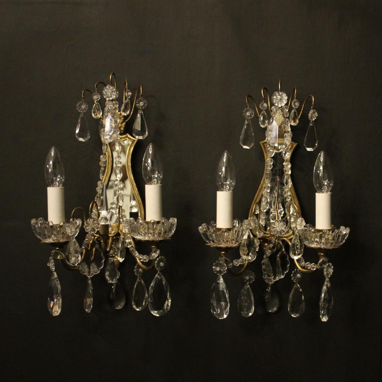 French Pair of Gilded Crystal Antique Girandoles