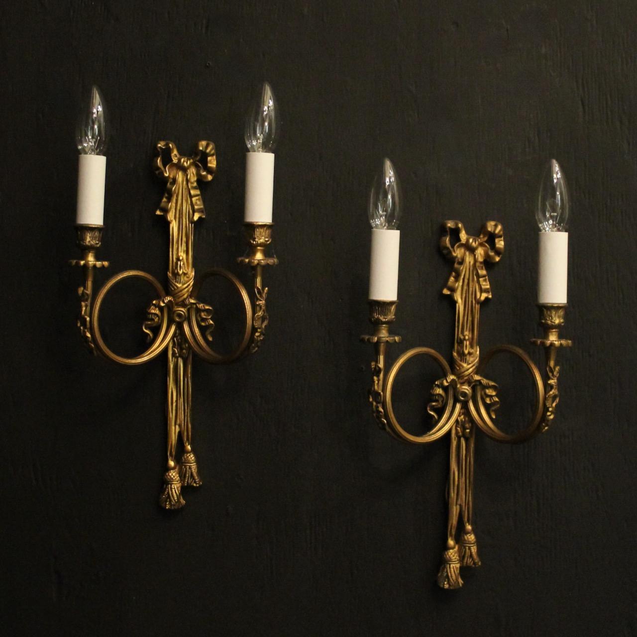 French Pair of Gilded Ribbon Wall Lights