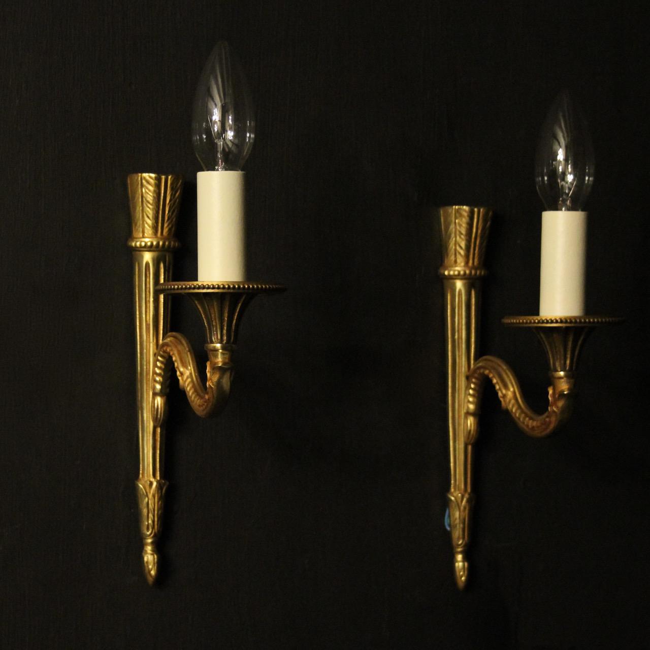 French Pair Of Gilded Single Arm Wall Lights