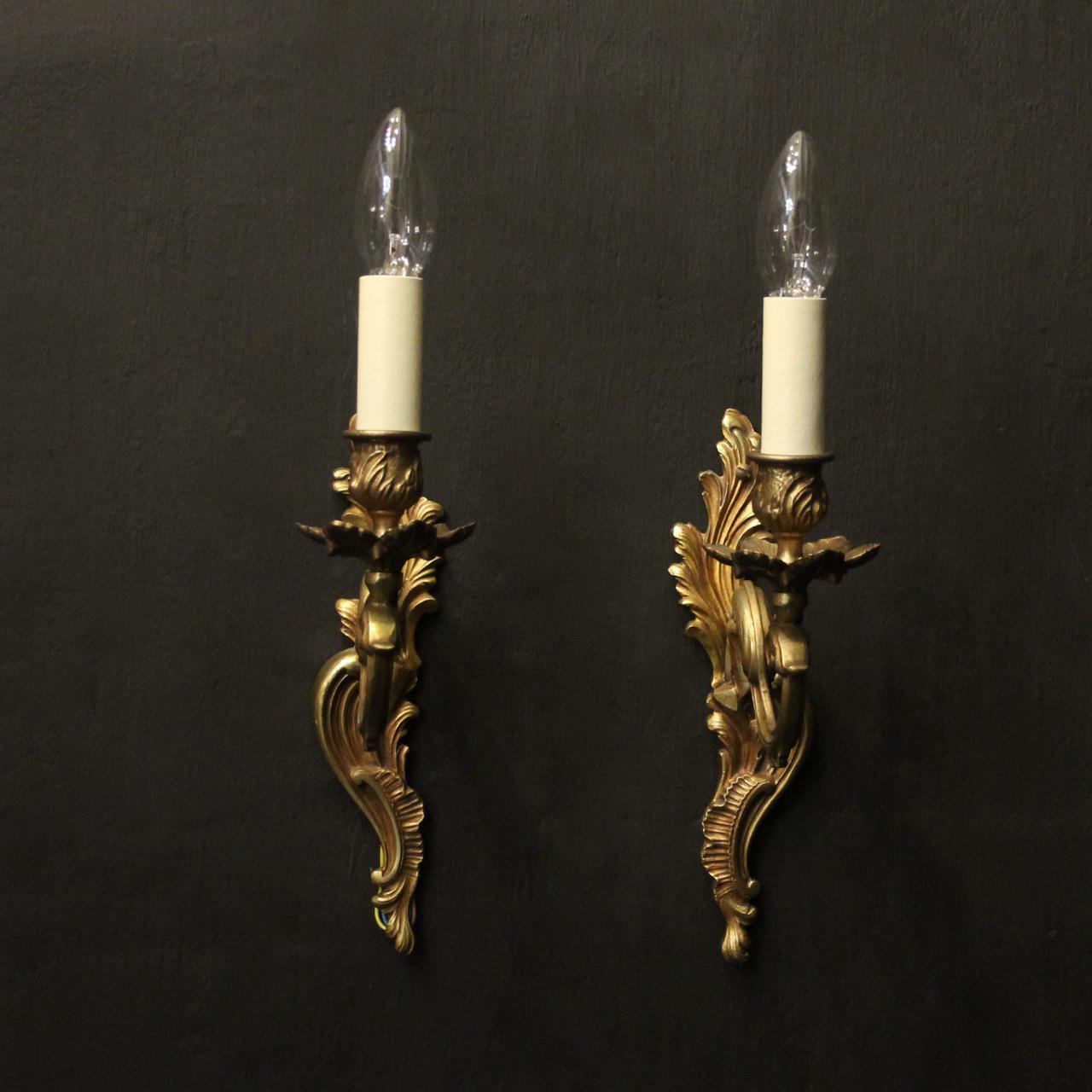 French Pair of Gilded Single Arm Wall Lights