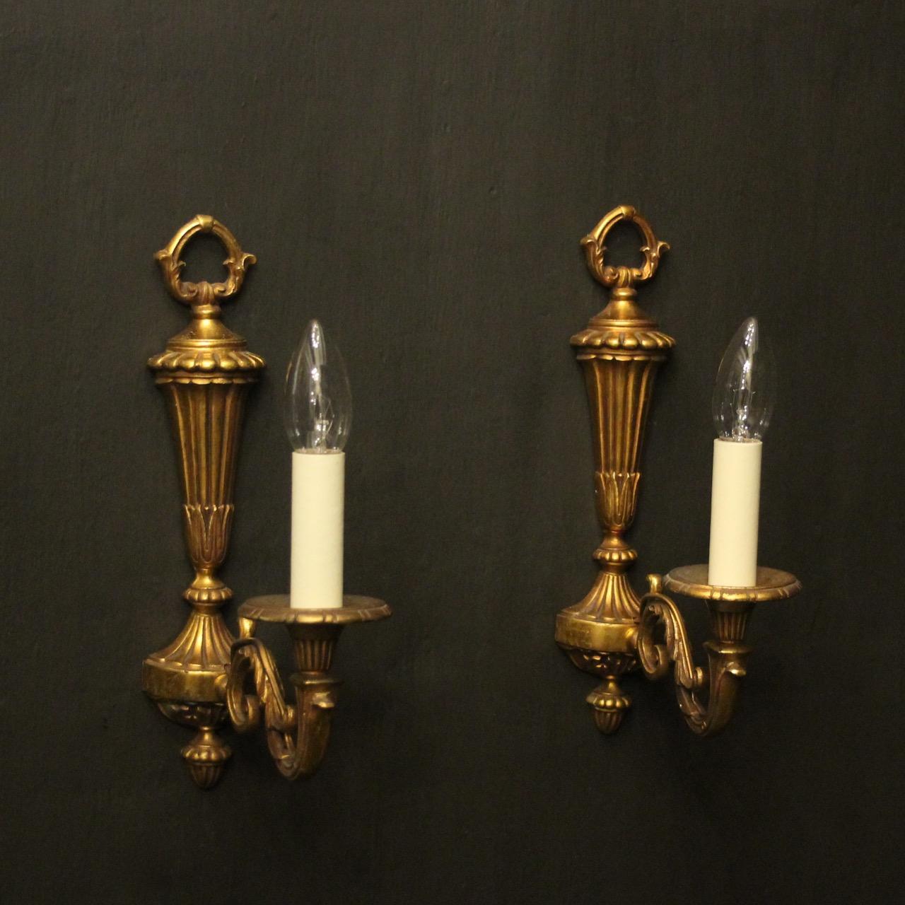 French Pair Of Gilded Single Arm Wall Lights