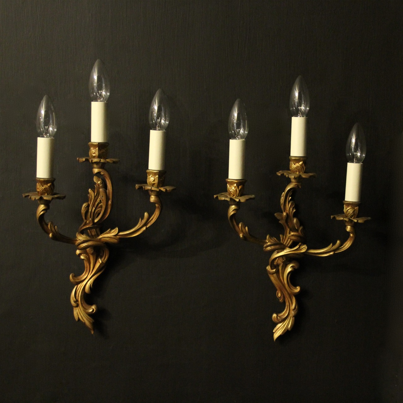 French Pair of Gilded Triple Arm Wall Lights