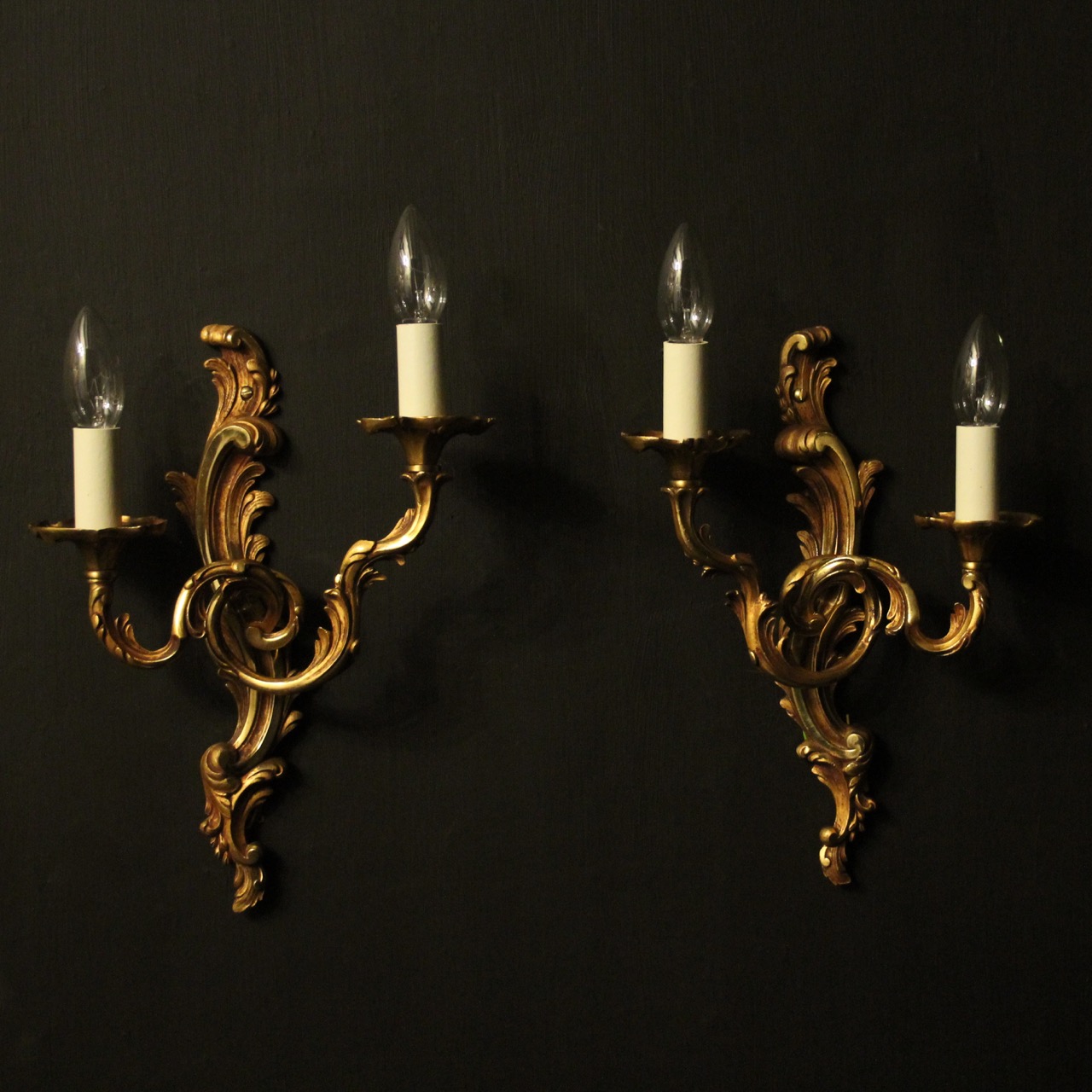 French Pair of Gilded Twin Arm Wall Lights