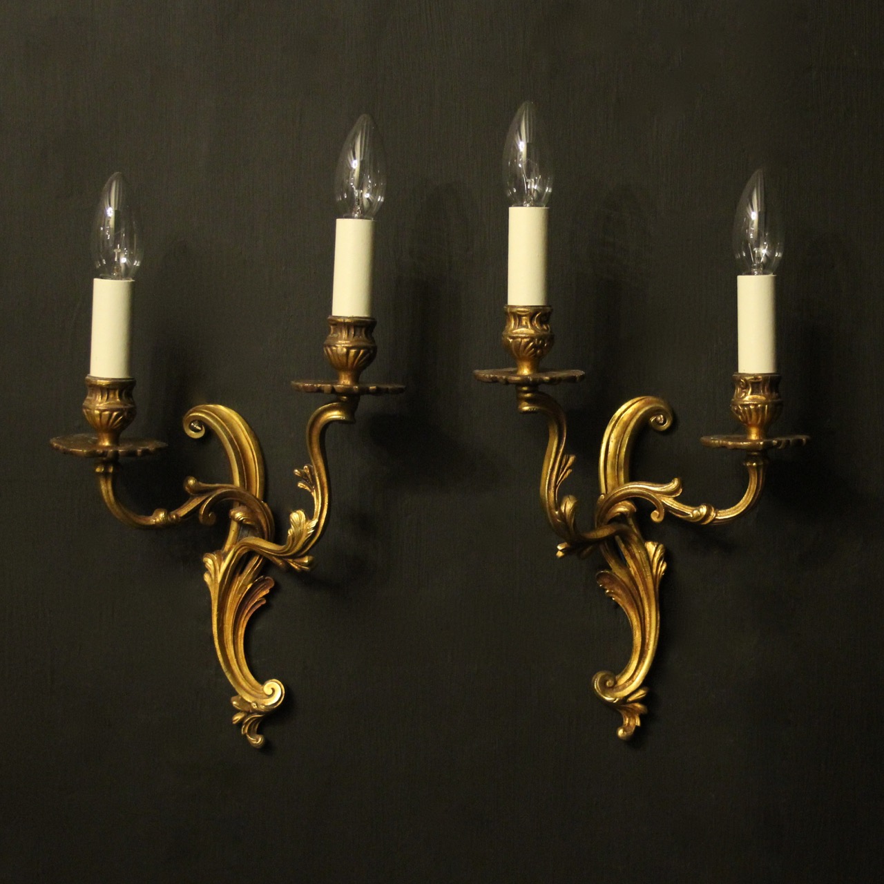 French Pair of Gilded Twin Arm Wall Lights