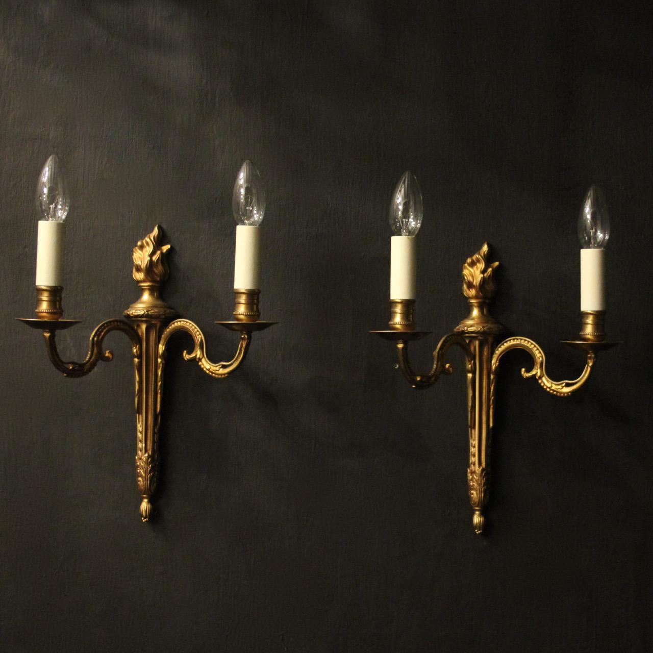 French Pair of Gilded Twin Arm Wall Lights
