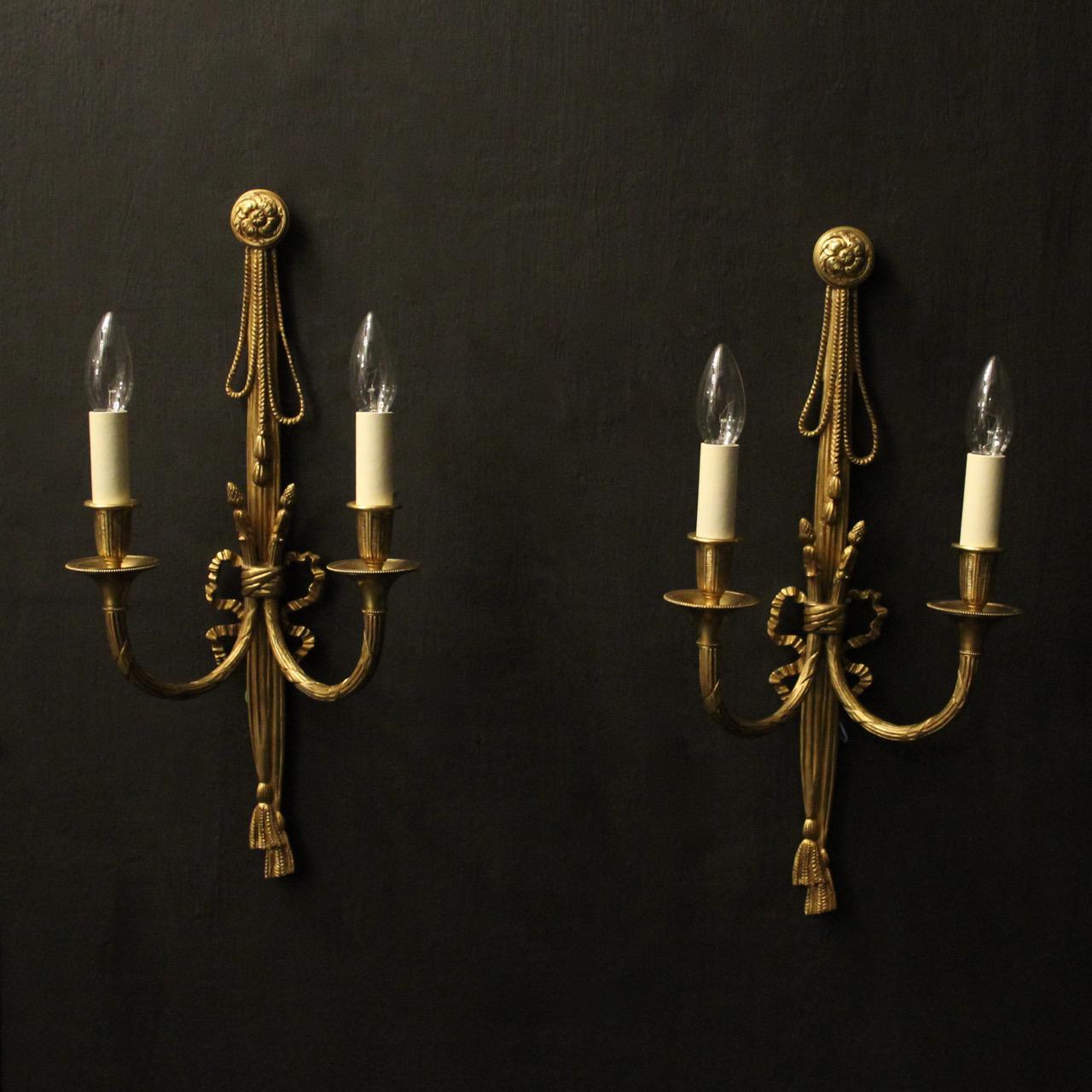 French Pair of Gilded Twin Arm Wall Lights