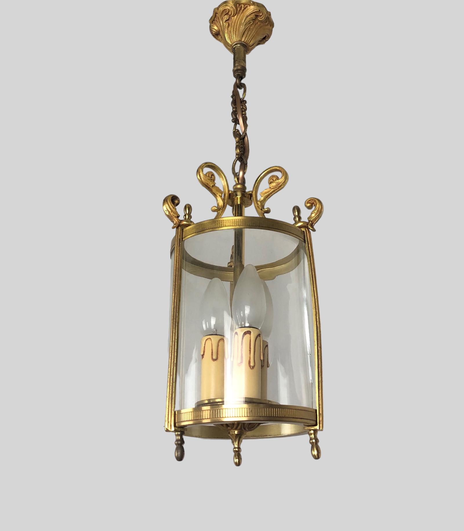 French Pair of Gilt Bronze Hall Lanterns with Glass Panels