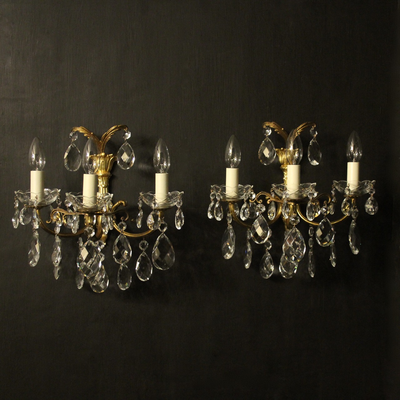 French Pair of Gilt & Crystal Antique Wall Lights