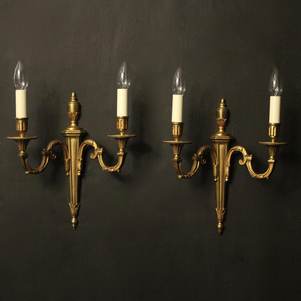 French Pair of Gilt Twin Arm Antique Wall Lights