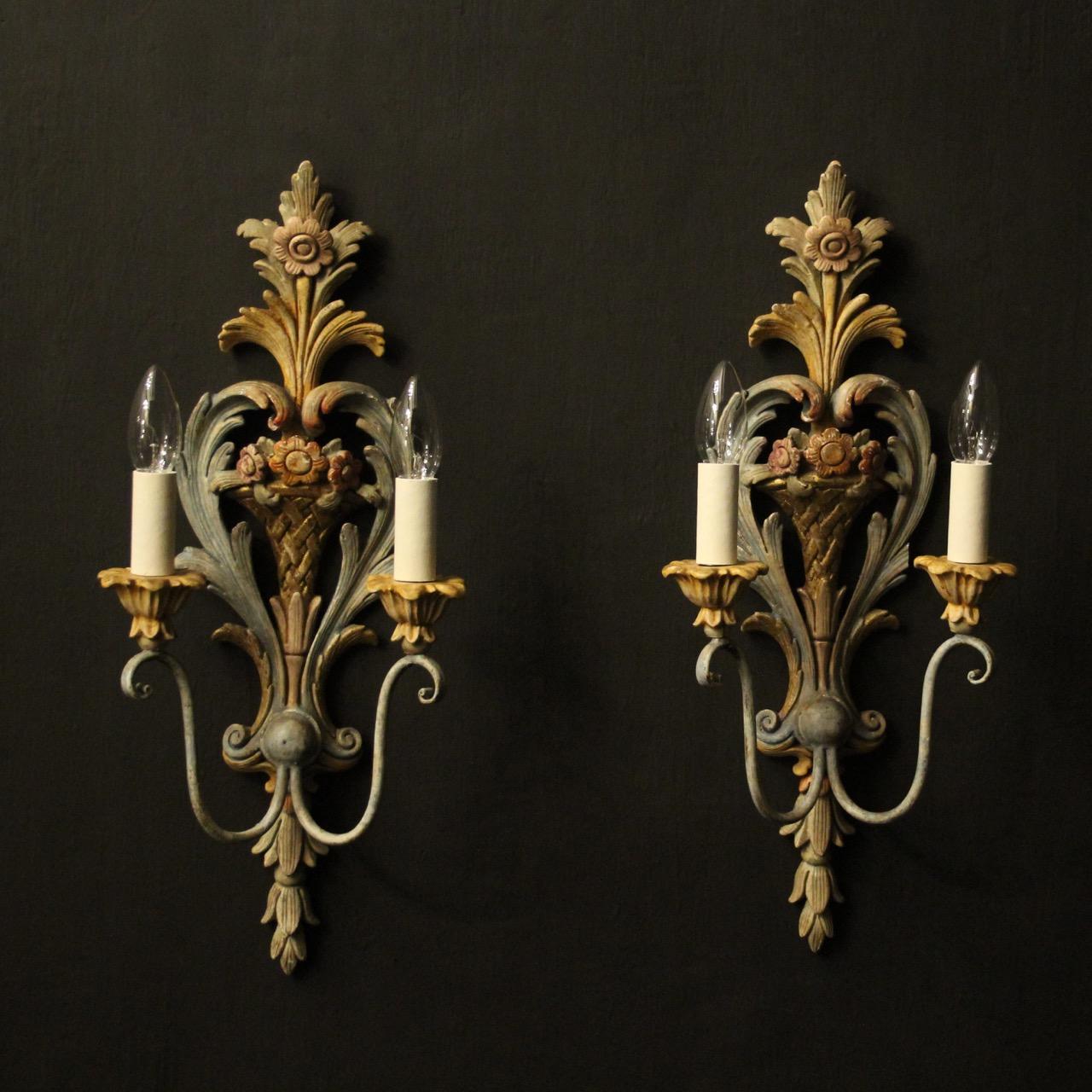 French Pair of Polychrome Antique Wall Lights