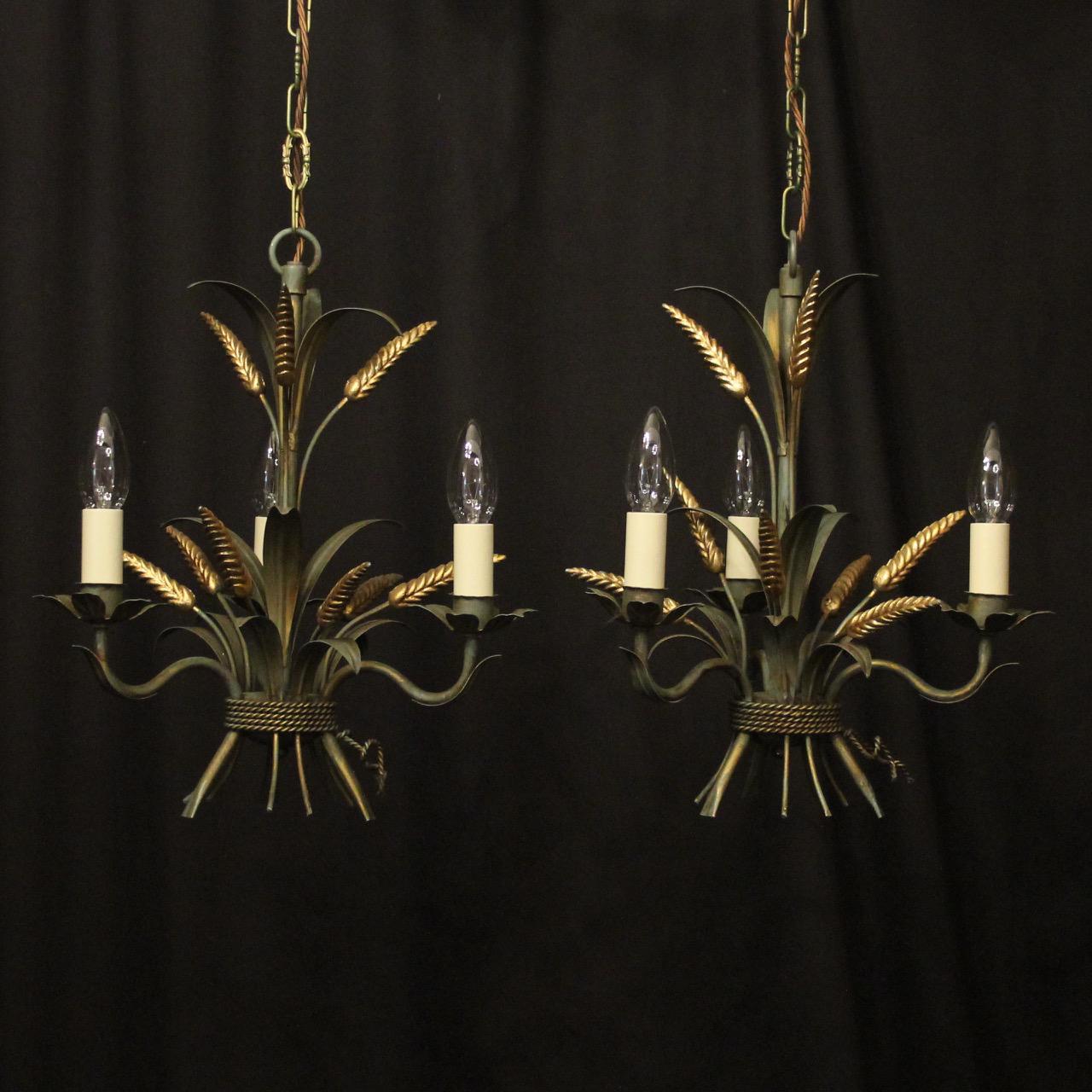 French Pair of Polychrome Wheatsheaf Chandeliers