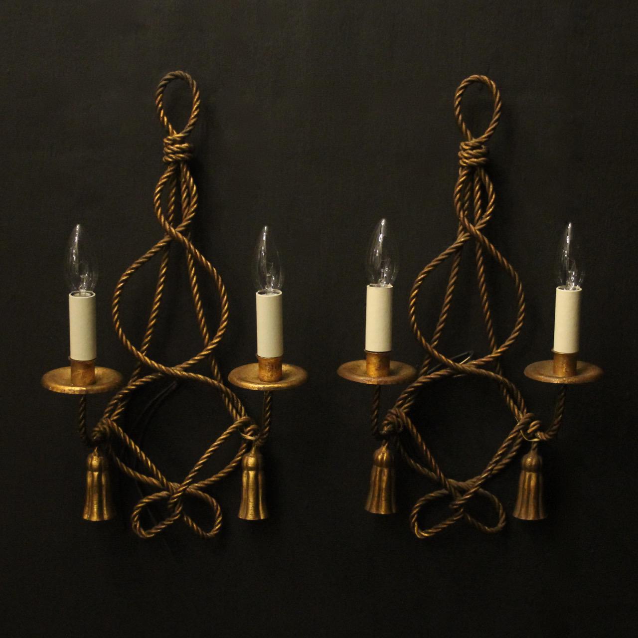 French Pair of Rope Gilded Antique Wall Lights