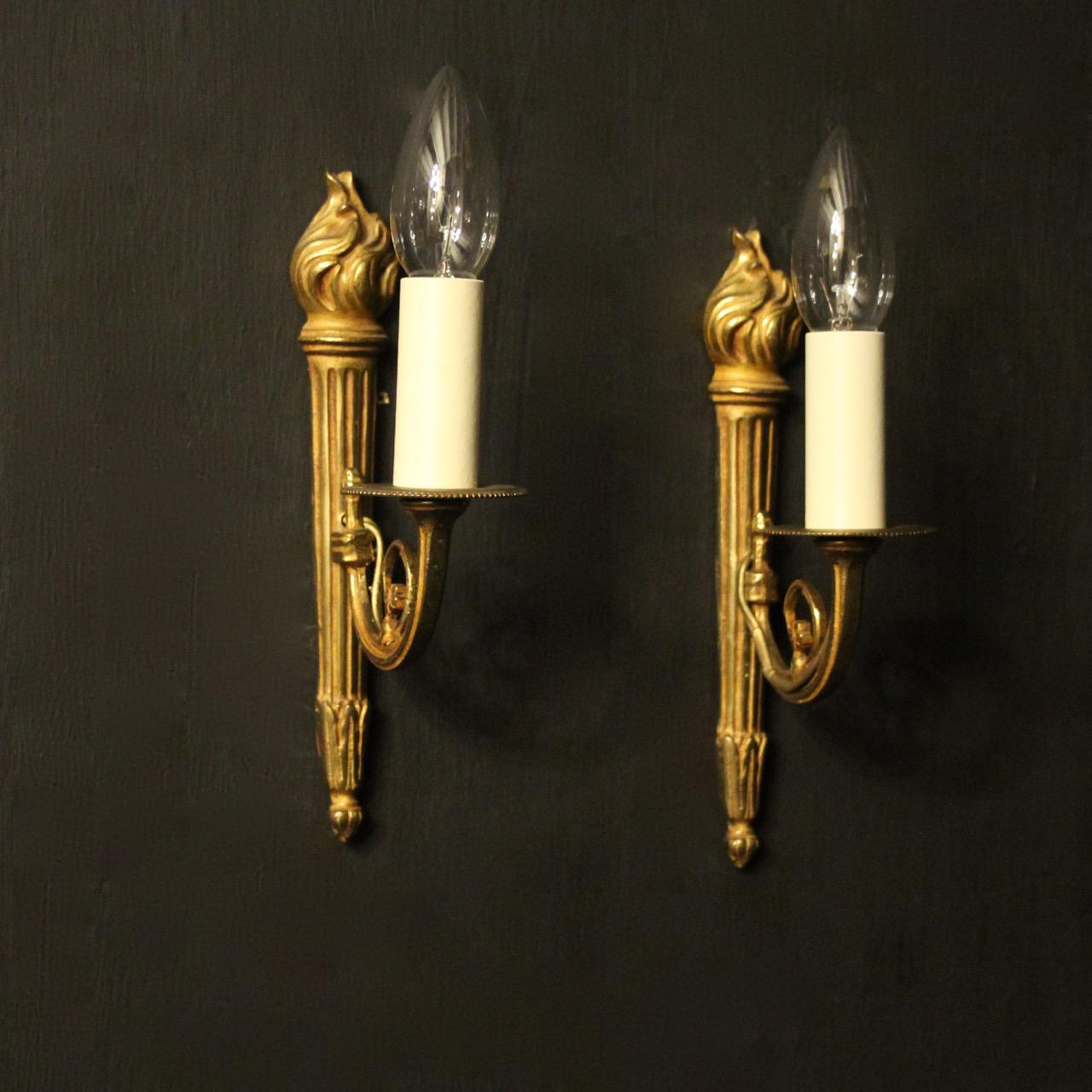 French Pair of Single Gilded Flame Antique Wall Lights