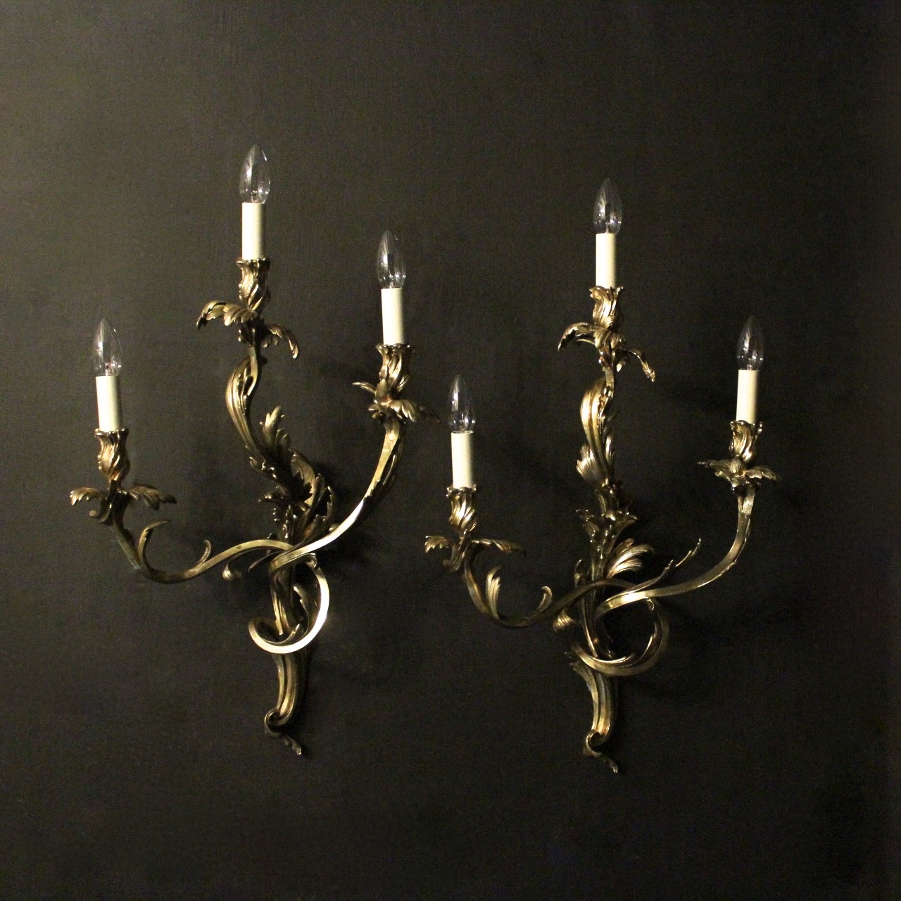 French Pair of Triple Arm Antique Wall Sconces c.1900