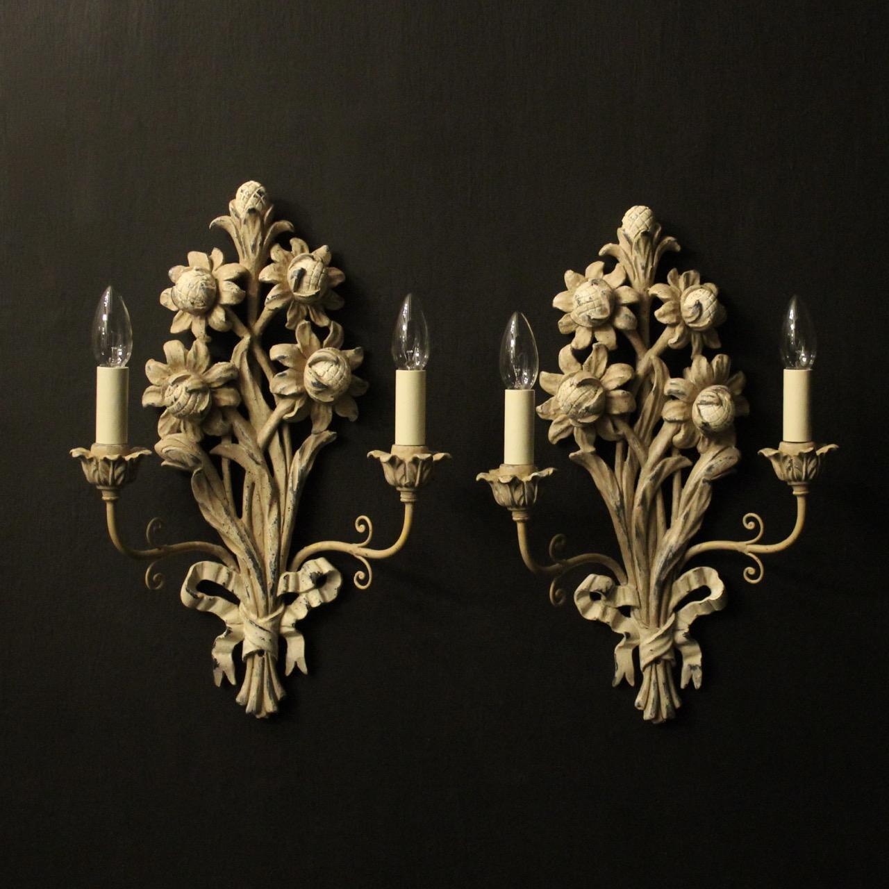 French Pair of Twin Arm Polychrome Wall Lights
