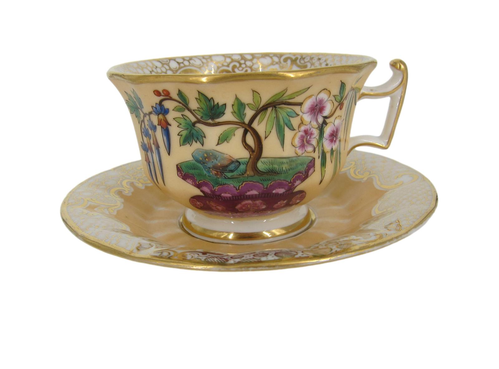 French Porcelain Cafe Au Lait Ground Tea Cup & Saucer