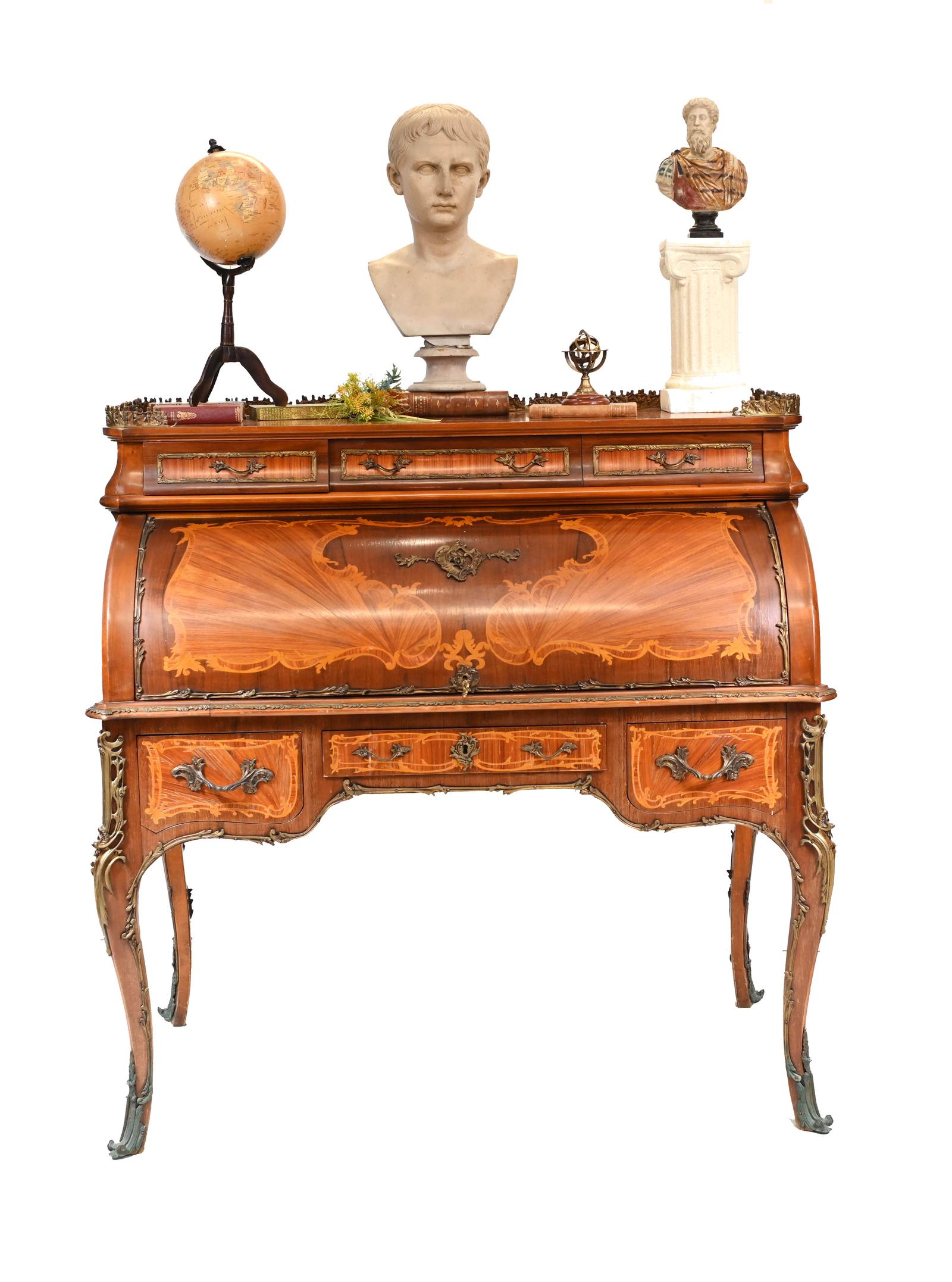 French Roll Top Desk Louis XVI Inlay Bureau
