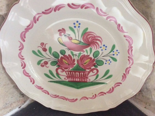 French S' Clement Decorative Cabinet Ceramic Plates Decorated with Cockeralls Stamped Makers Name & France