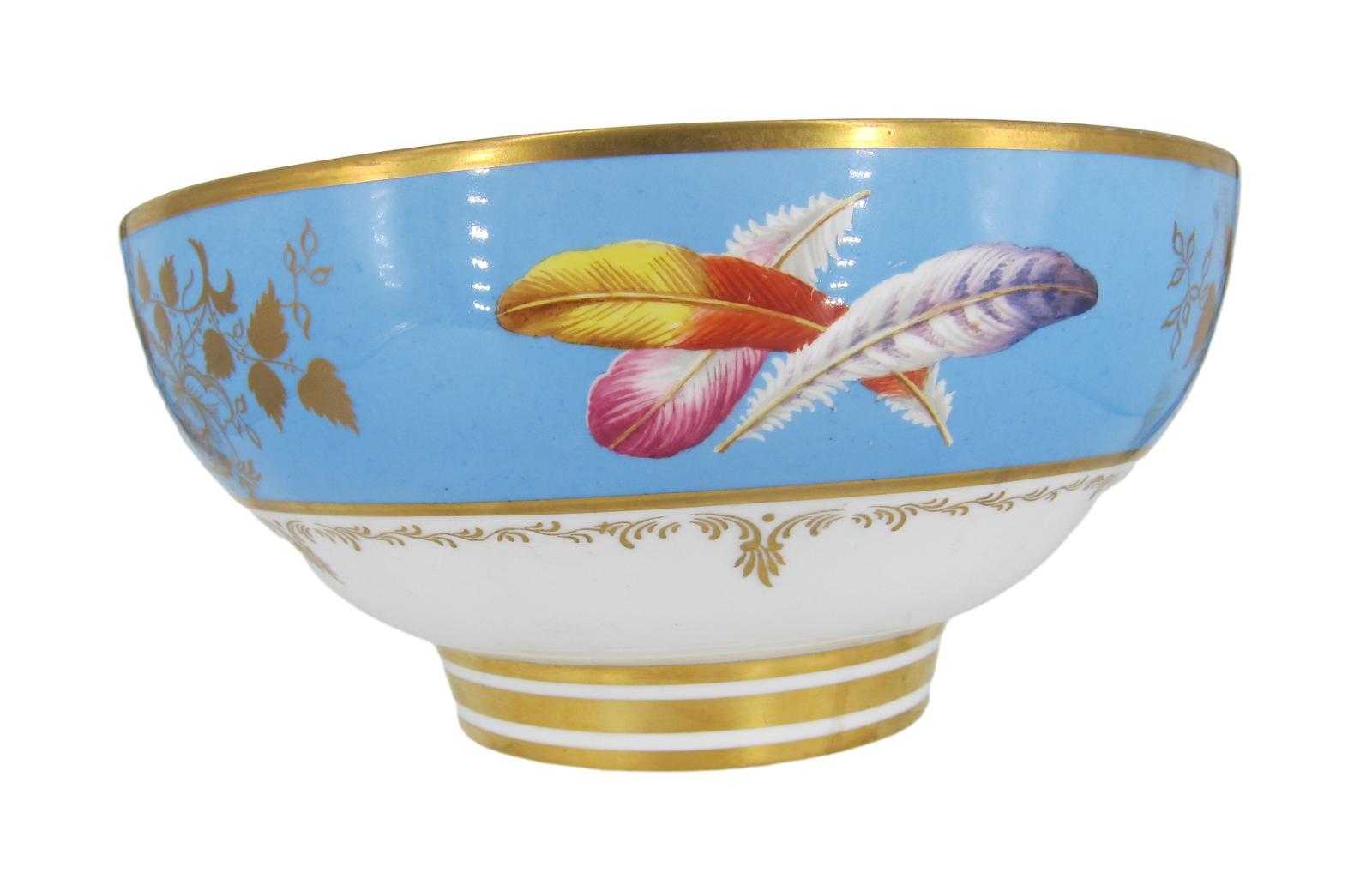 French Samson Porcelain Punch Bowl Mid Blue Ground & Decorated With Feathers & Gilding