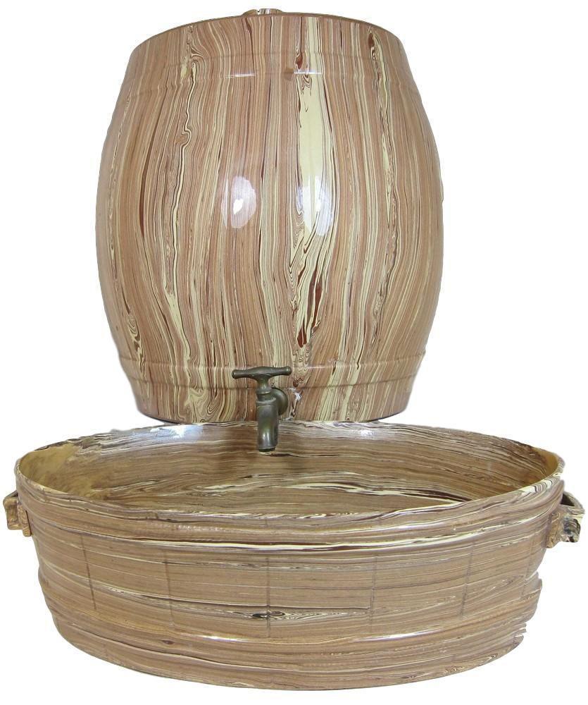 French Sarreguemines Agateware Fountain & Basin