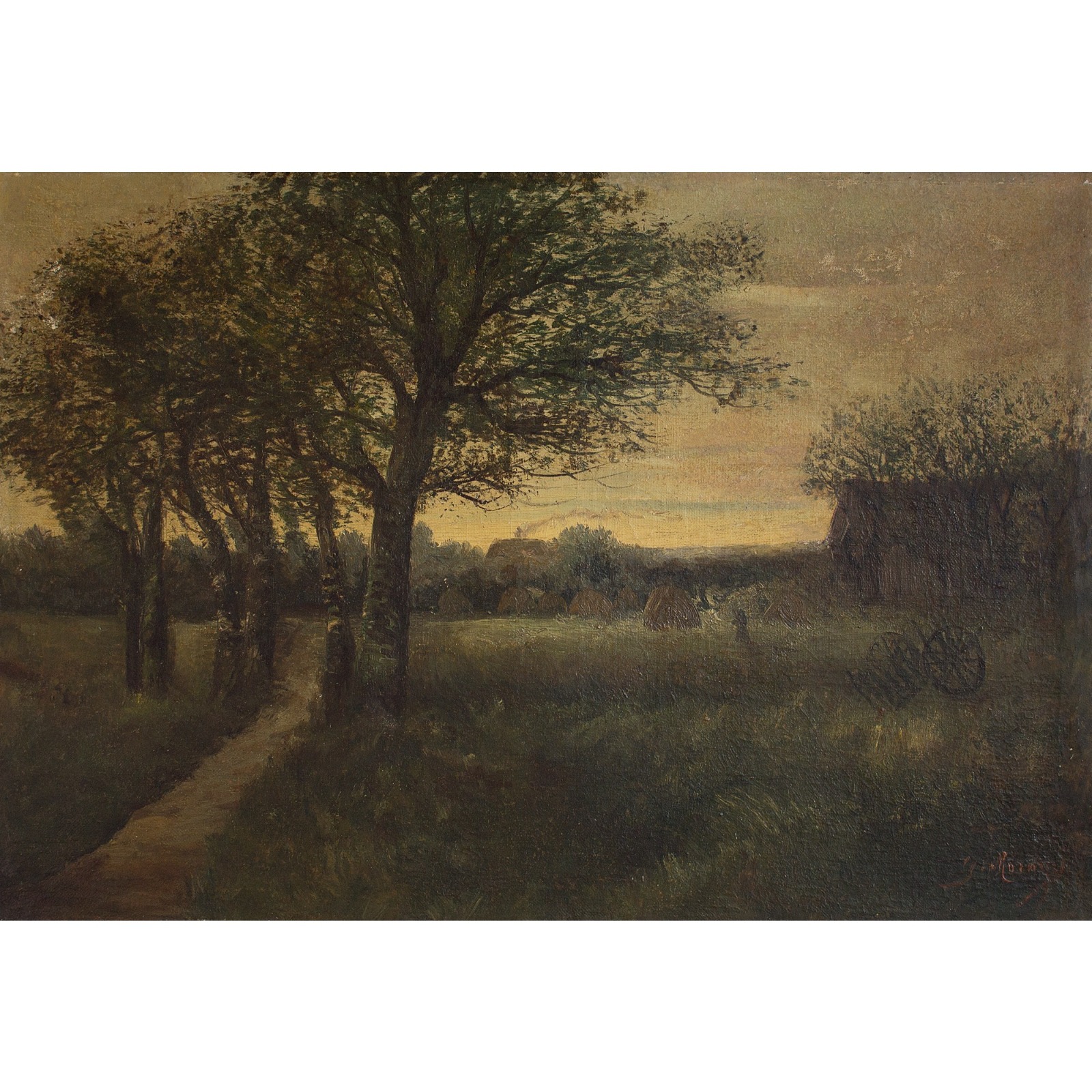French School Landscape with Setting Sun
