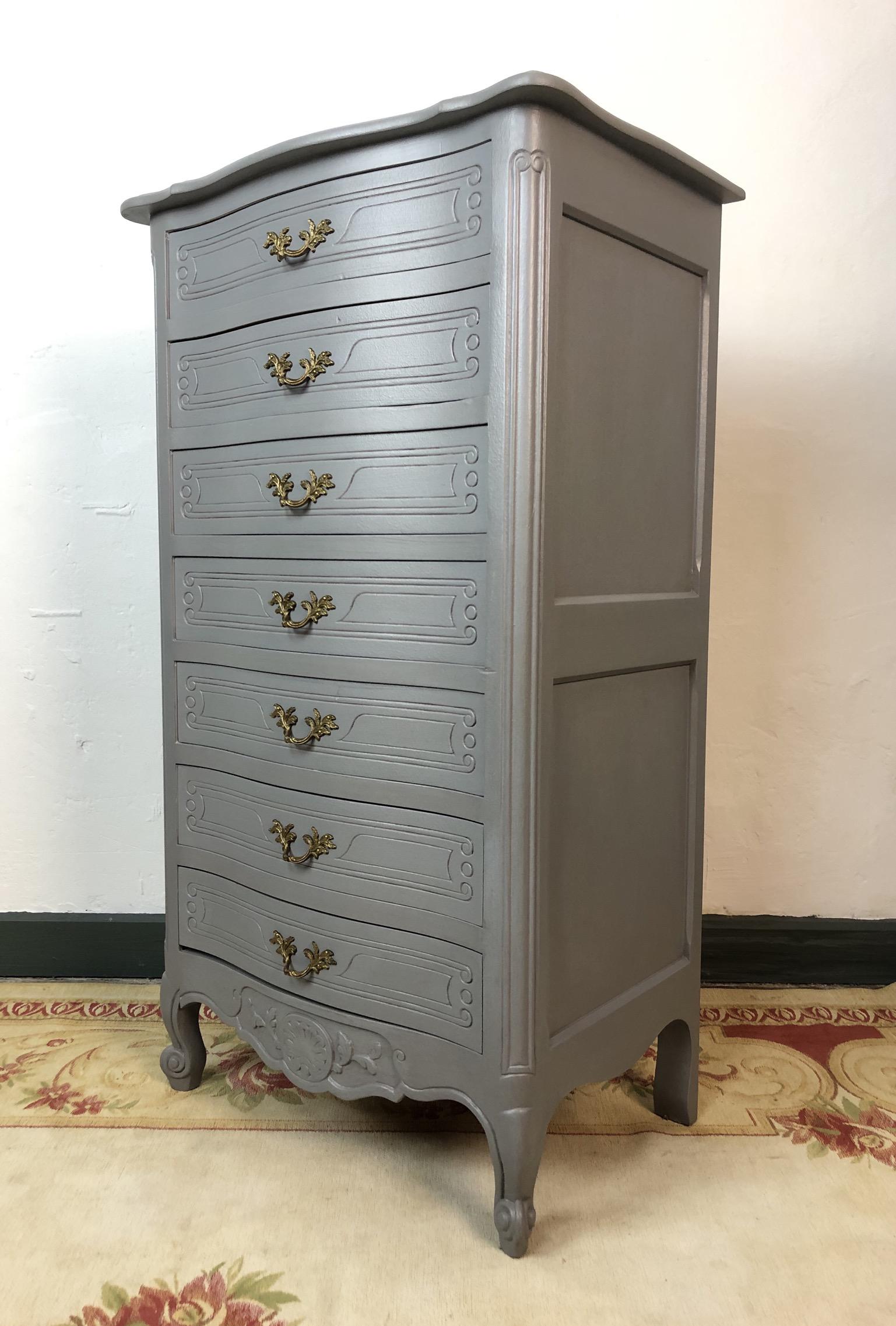 French Semainier Chest Of 7 Drawers Painted In Anthracite Grey