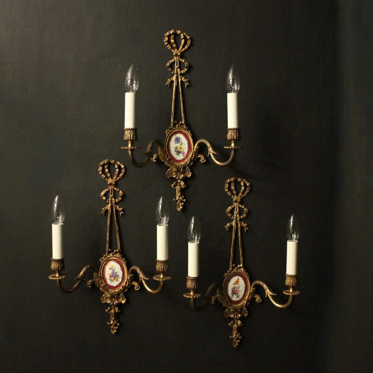 French Set of 3 Gilded Antique Wall Lights
